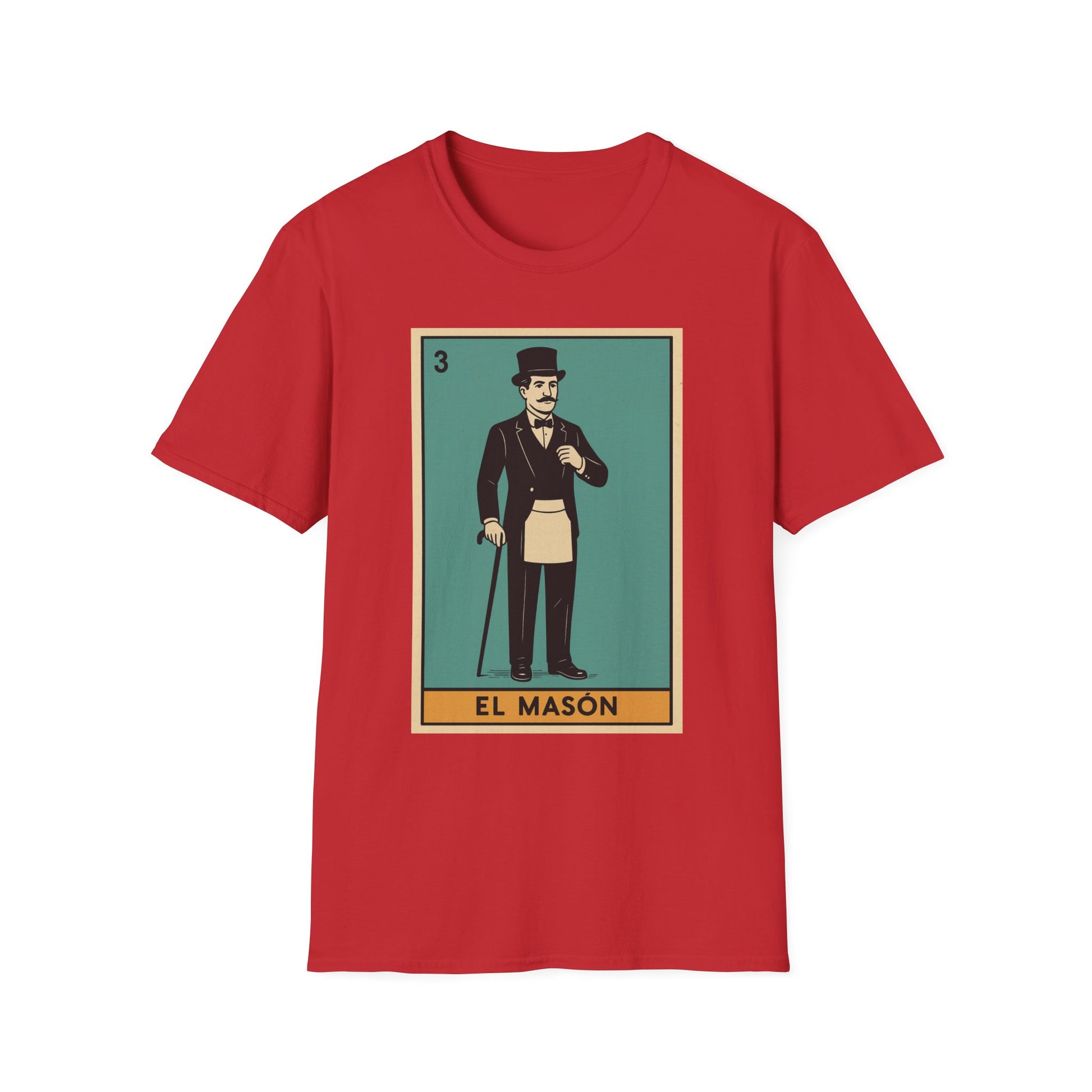 A bold tribute to brotherhood and heritage, El Masón is your new favorite tee. Inspired by the classic Mexican Lotería card game, this design puts the Freemason front and center — decked in formal regalia, top hat, and apron, standing proud as card No. 3.