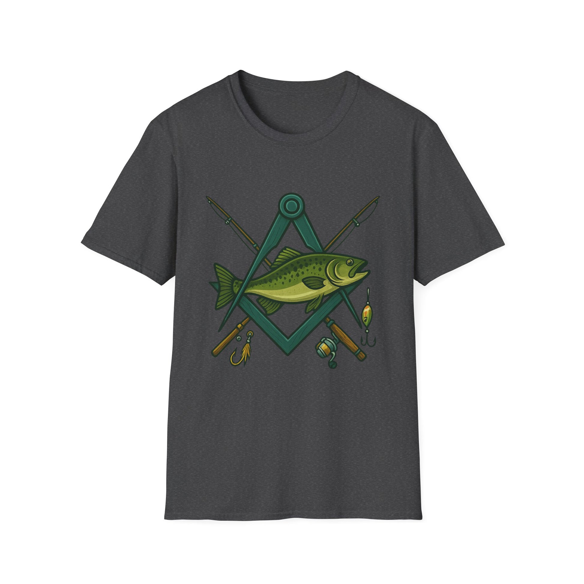 Hooked on the Craft features a bold largemouth bass leaping through the classic Square & Compasses, surrounded by crossed fishing rods, lures, reels, and a touch of rustic detail. Whether you’re casting at dawn or talking light in the evening, this shirt honors both your passions — Brotherhood and the big catch.